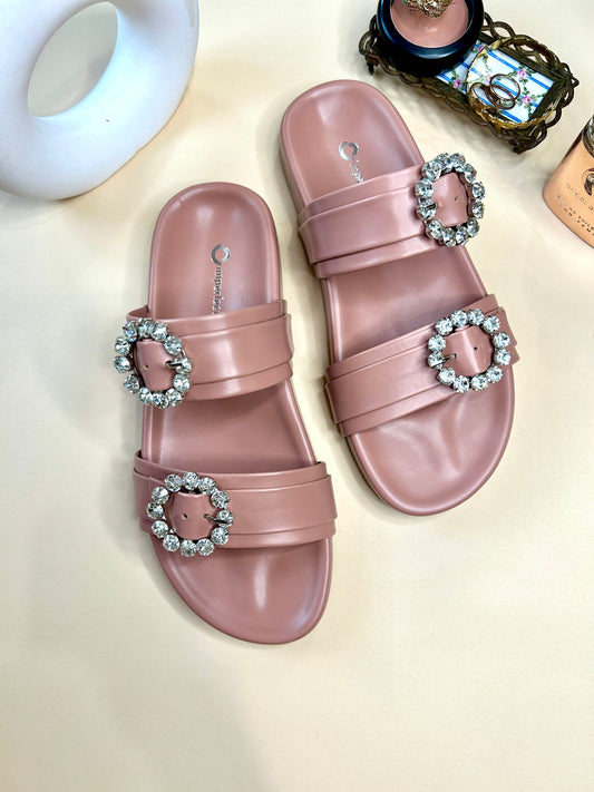 • Slider Sandals With Rhinestone Buckle