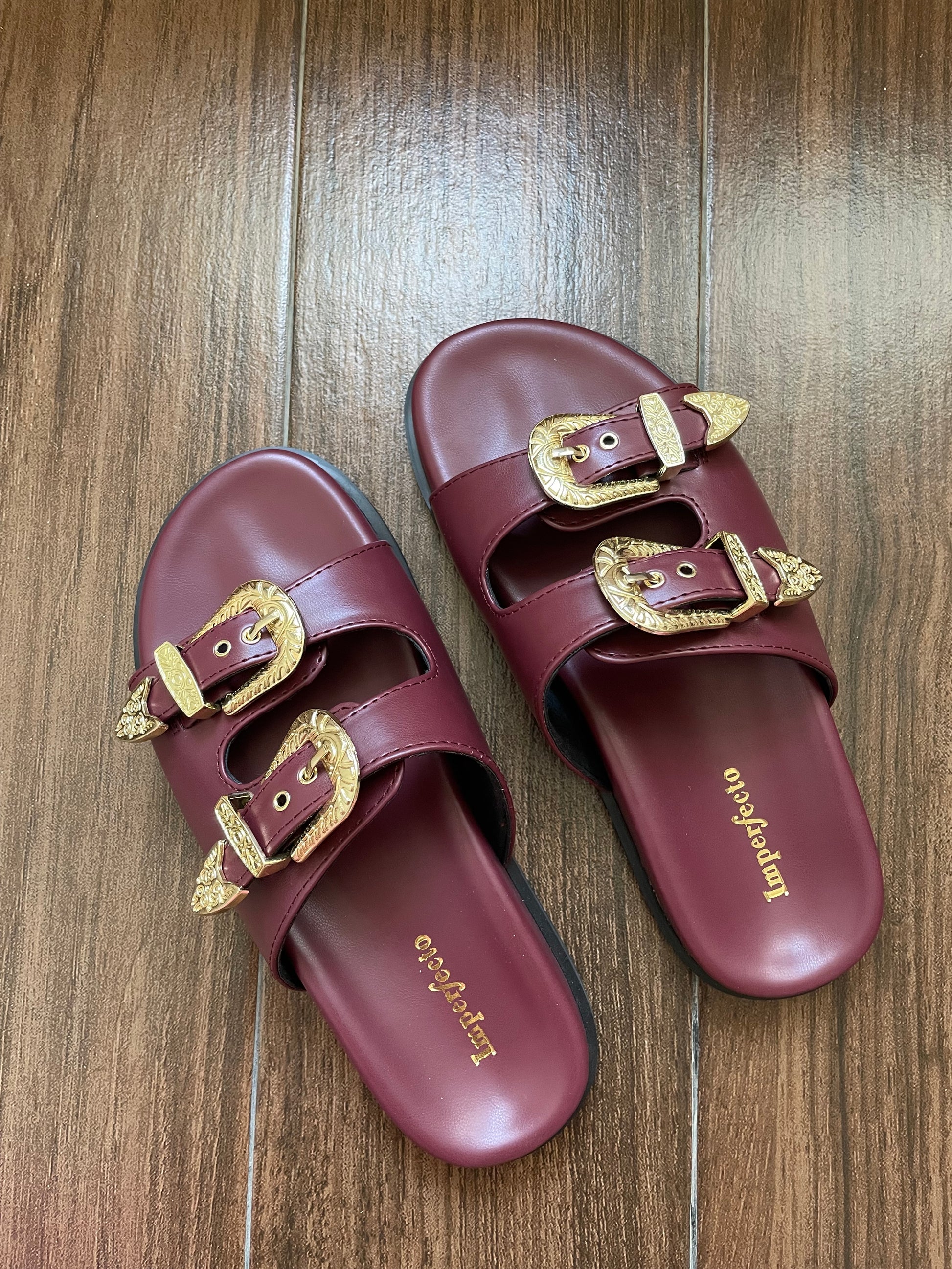 Swifty Sandals - Maroon Gold Buckle