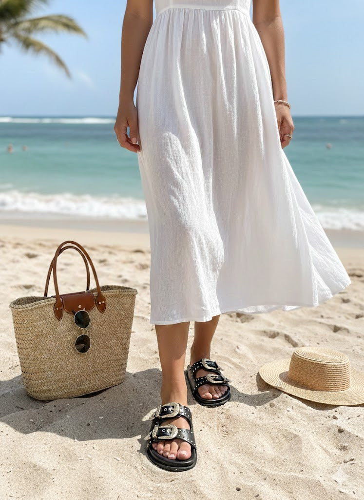 Our most-loved Swifty style is now in GOLD . Lightweight, comfortable sliders with buckle detailing and adjustable straps for all-day ease. Effortlessly chic and perfect for summer outings.
